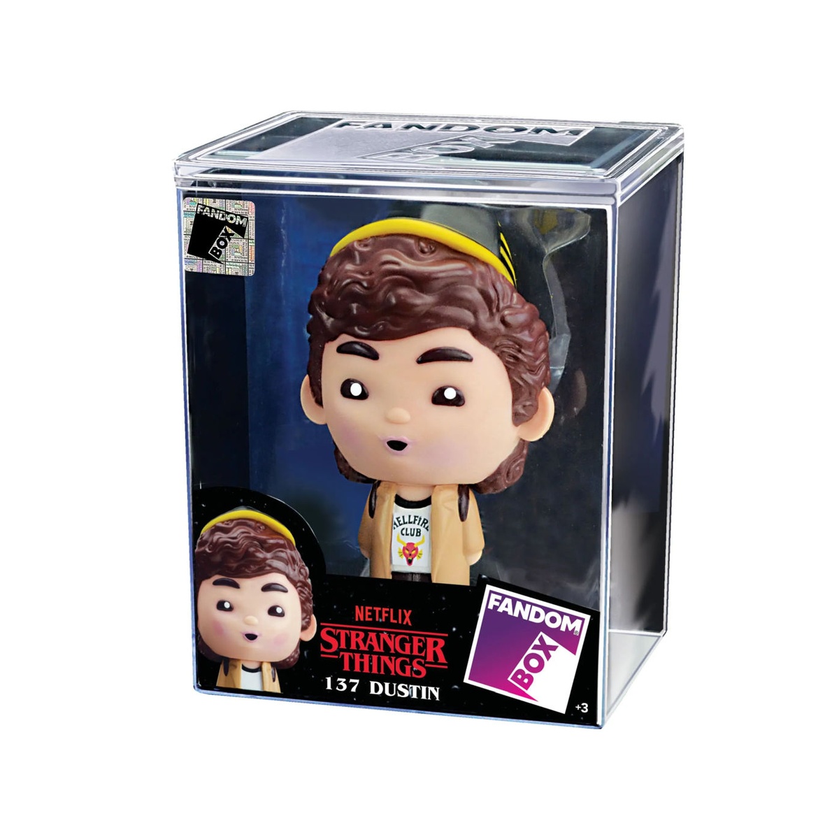 Dustin chega fiel ao personagem, com acabamento premium e display acrílico incluso. Peça licenciada, produzida com controle de qualidade para fãs e colecionadores de Stranger Things.